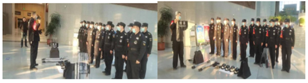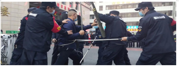 为喜迎“二十大”,保障“三馆一院”安保维稳工作。10月18日,市保安公司驻三馆一院保安队针对可能出现的突发事件,专门组织防恐防暴演练活动,通过此次演练对队员进一步培训,让队员对防暴器材加深认知和使用方法,也让队员熟悉牢记在处置类似事件要做到处事不慌,紧张有序,处置得力。