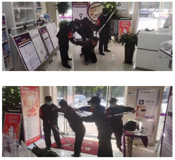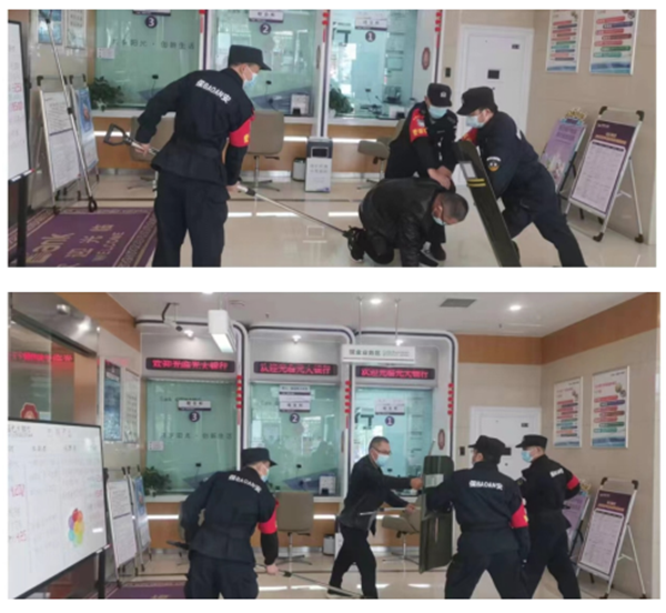 10月18日、19日,市保安公司第二勤务大队光大银行岗点,组织保安队员进行防恐演练。