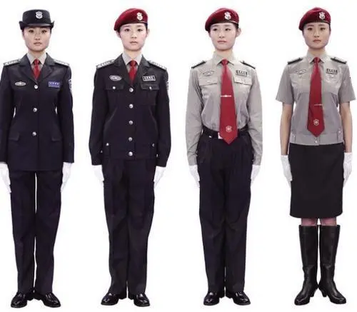 保安员服装分为:春秋冬常服、执勤服、押运服、训练服、长短袖衬衣、夏裤、女裙、棉服等。