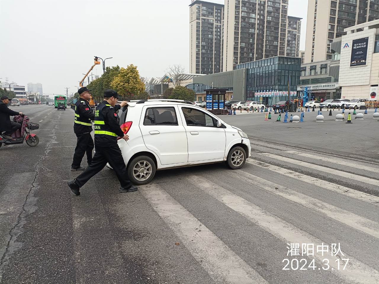 3月17日上午9时许,在灈阳大道(市场门口)路上,上演了这样暖人心的一幕,两名执勤巡防队员,化身“推车小哥”奋力在道路中央帮助群众,将一辆抛锚车辆推至安全区域。