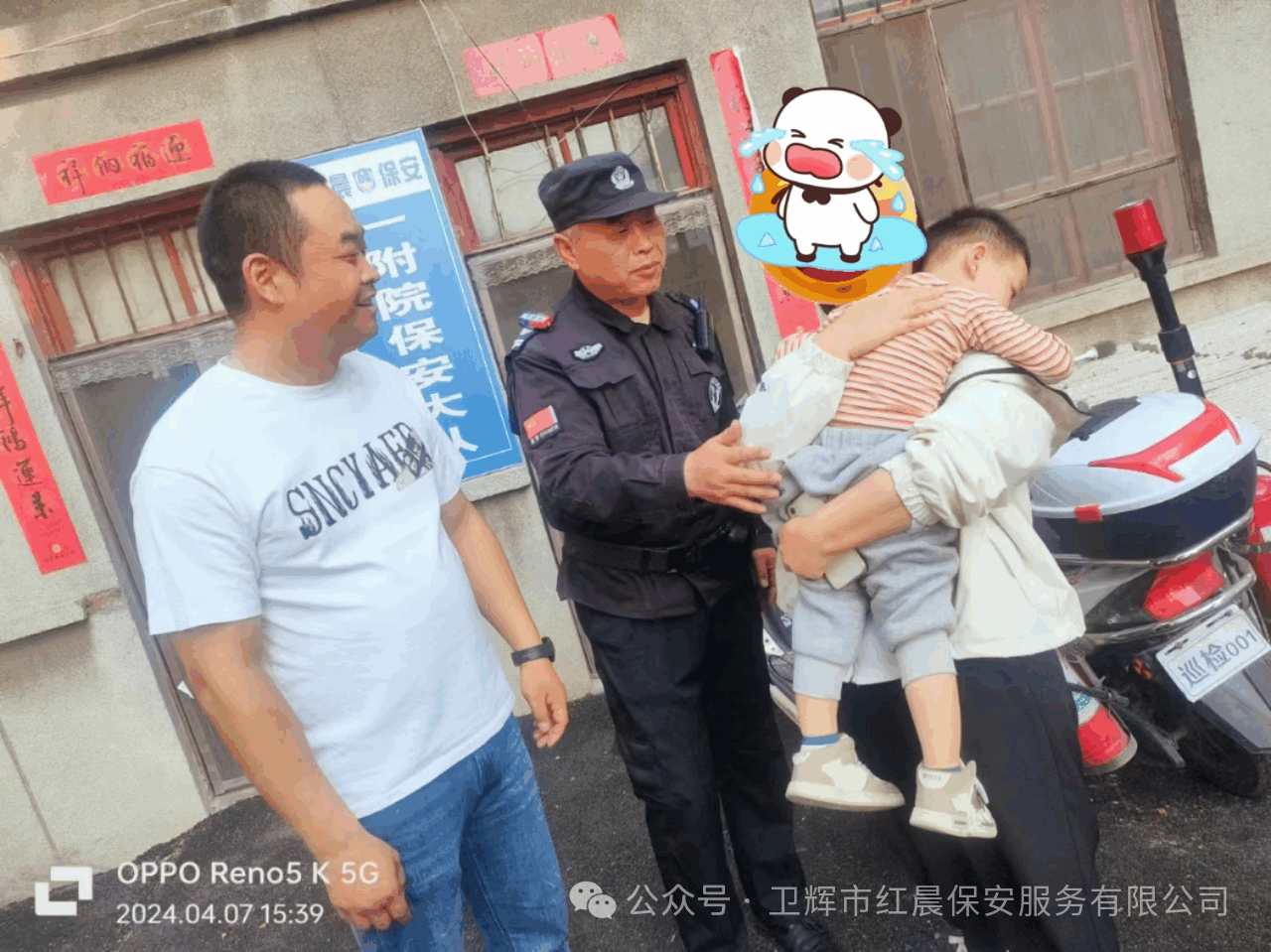 4月7日下午3点左右,新医一附院监控室接护士站报警,一名孩子找不到家长,这时,一附院保安大队副队长郭瑞东和队员刘学宾火速赶到现场,经了解,这位鹤壁的患者家属是带孩子去楼下归还轮椅,由于医院人流量大,疏忽了对孩子的照看,导致3岁左右的孩子走失。发现孩子不见后,家属焦急万分,立即向医院保安求助。