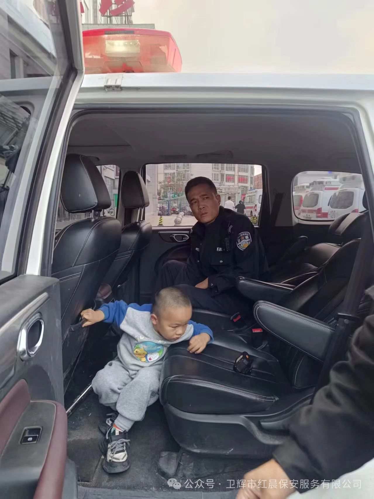两分钟后,北大门保安张贵荣在保安工作信息群中发来消息,称北大门停着一辆警车,车内有一名走失儿童在寻找家人,派出所民警第一时间给武队长回电话,派出所在医院周边巡逻时“捡到”一名走失儿童,让武队长通知家人前来认领。