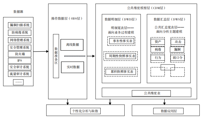 本层引入离线和实时数仓。数据仓库设计采用分层的设计,这样设计的原因是对于海量安全数据,需要对数据进行组织规划,使其具有清晰的数据结构,方便数据有秩序地流转,并且在数据开发过程中,能够减少重复开发,统一数据口径。