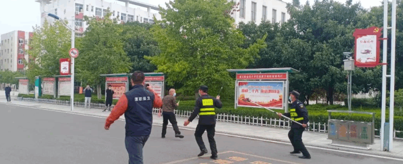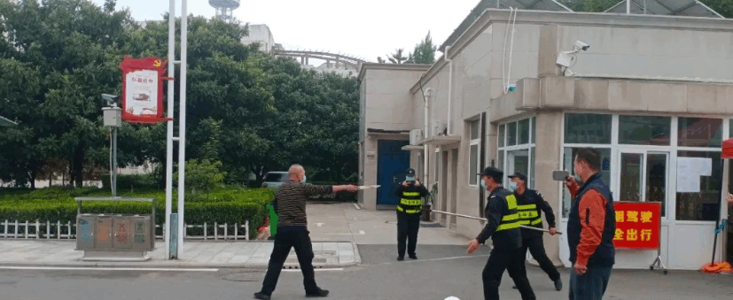 一名手持“凶器”的“歹徒”突然冲入门岗,拟闯入校园行凶