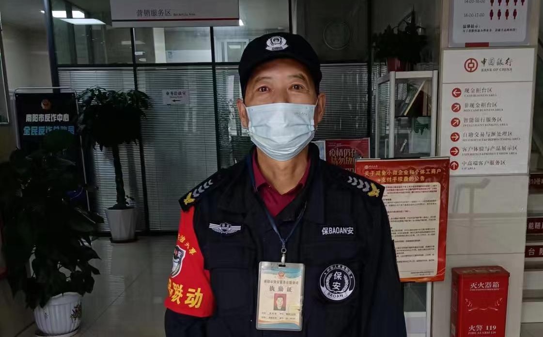11月13日傍晚,南阳市保安服务公司驻中国银行南阳分行保安员张怀明回家路途中路过育阳桥时,突然发现一女子哭泣着正欲翻越栏杆向桥下跳。张怀明立即冲上前去,紧紧抓住该女子的胳膊和大腿,一边劝说该女子不要轻生,一边大声向周围呼喊救援。此时两名好心市民也赶来帮忙,才将该女子拉回。同时,张怀明又拨打110电话报警,辖区派出所民警闻警后将该女子带离现场,疏导劝解。这时,张怀明才放心地离开。