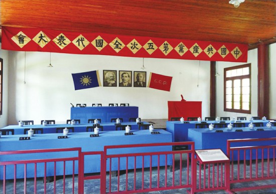 黄陂会馆是一栋长方形的建筑物,一头开着大门,一头立着三开间平房,中间的大厅布置成会场,左边房间是大会秘书处办公、油印文件的地方,右边的房间空着。大厅至大门隔着一个长方形的院子,当中一条石子路,两旁是草地,草地外是围墙。大门外的两间房子住着几位卫士,保卫大会的安全。