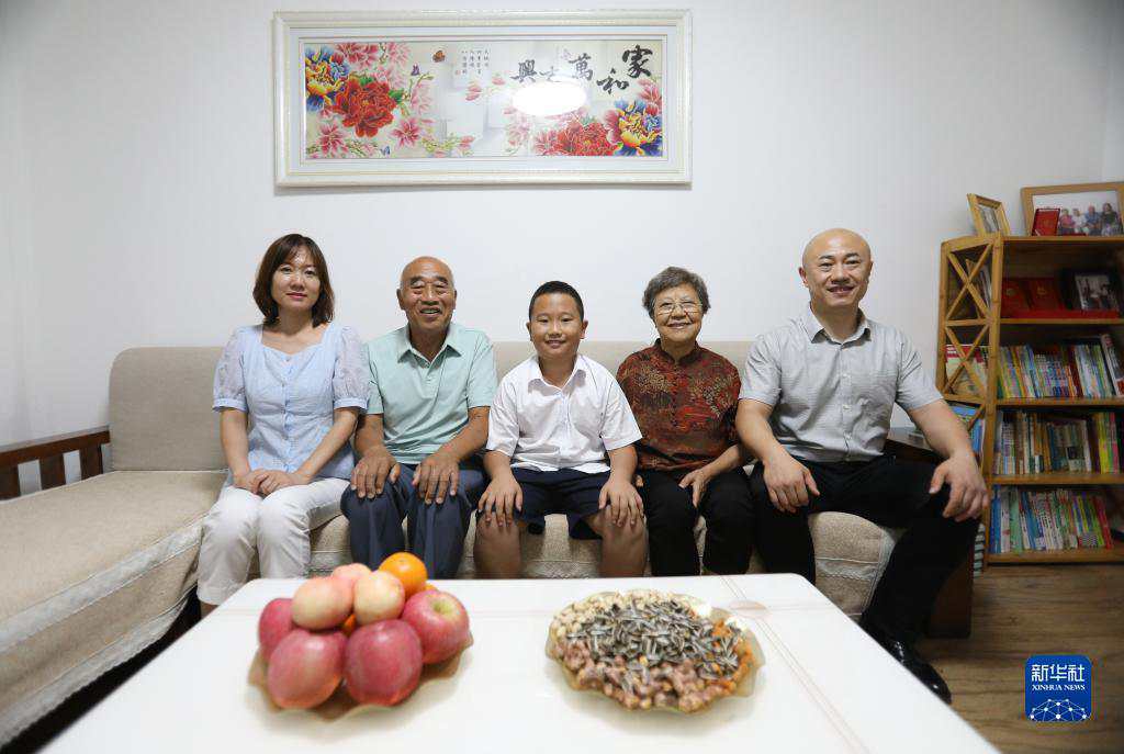 2022年8月17日,沈阳市牡丹社区居民李水(左二)一家合影。新华社记者 王乙杰 摄