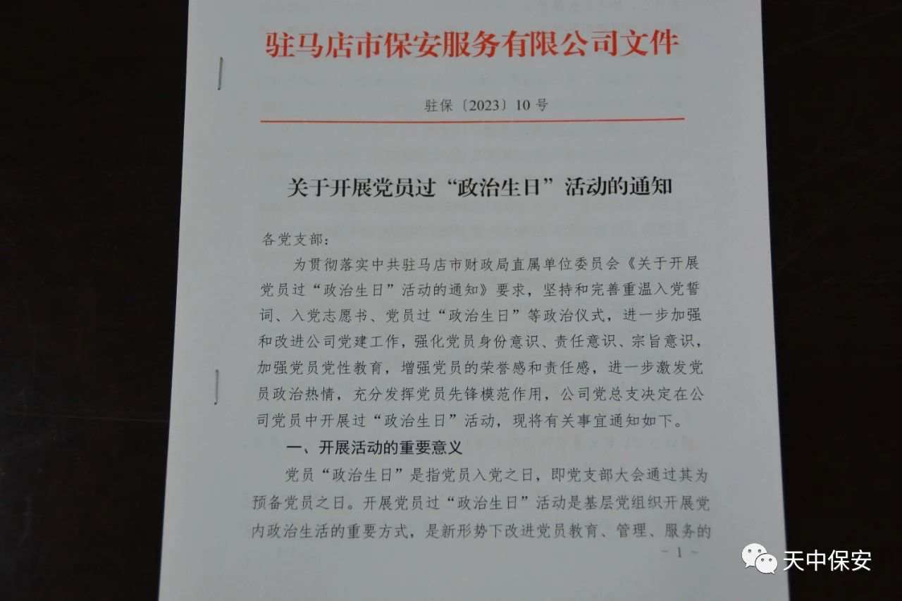 驻马店市保安服务有限公司开展第一季度集体“政治生日”活动