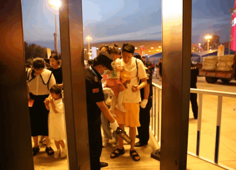 活动开始前,全部安检队员以整齐的着装,精神的面容,排列在安检门两侧,迎接参会的人员。晚上19点,参加开幕式的群众陆续抵达活动现场,根据活动方案,负责现场巡控的队员及时引导入场人员从各个安检门进入,此时所有安检人员都打起了十二分的精神,时刻保持警惕,严格落实安检工作要求和工作流程,做到文明检查,履职尽责,严禁将一切不安全因素和可疑物品带入场内,确保安检工作任务不漏一人、一物,保证万无一失。