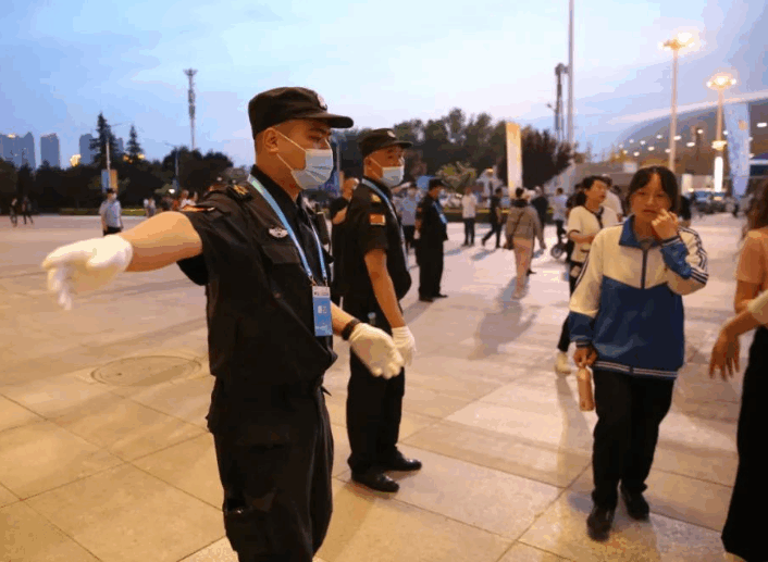 晚上20点整,开幕式正式开始,仍有部分参会群众陆续进入,虽然里面有精彩纷呈的歌舞和绚丽的灯光,但是安检队员们的精神不敢有一丝懈怠,仍然认真检查着每个进入会场的人员。