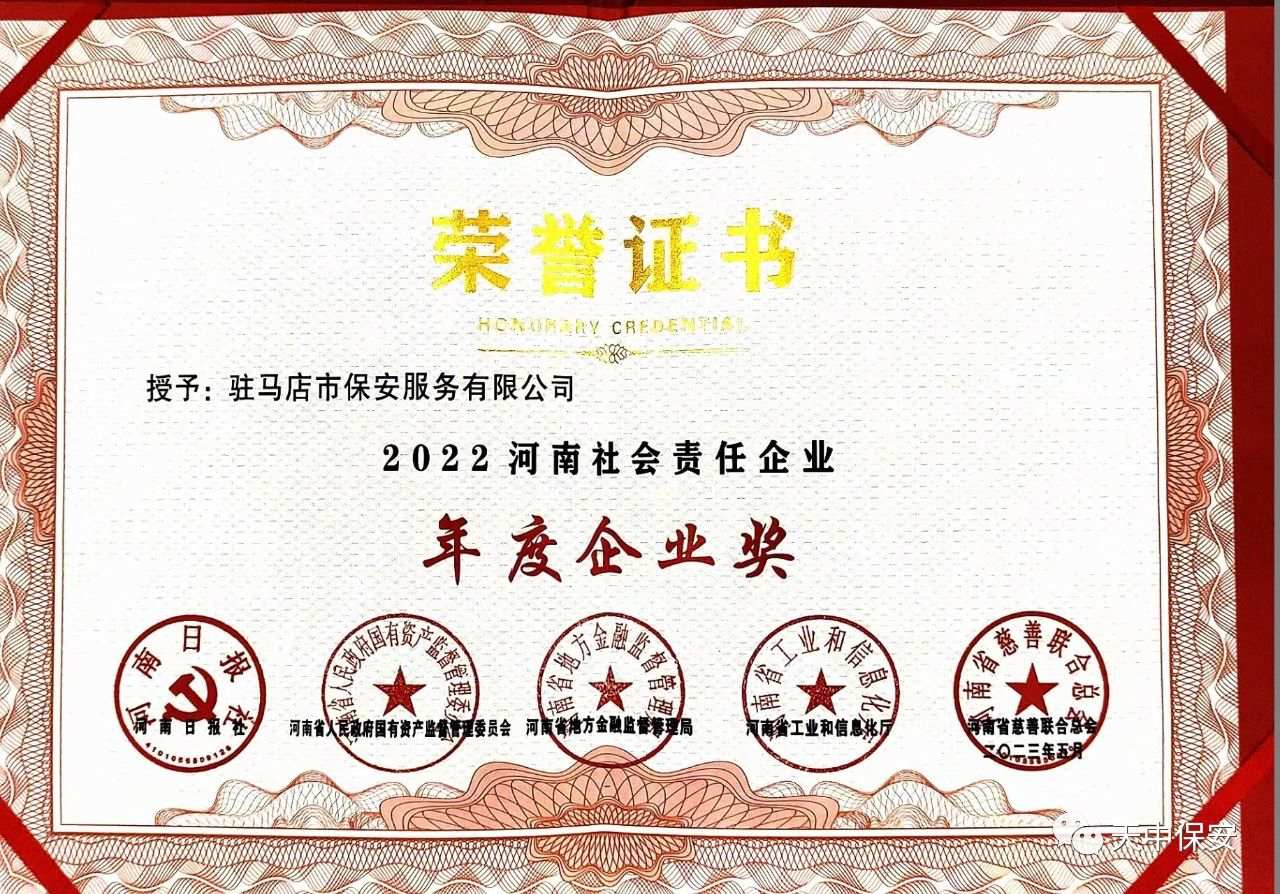 驻马店市保安服务有限公司荣登“河南社会责任企业及社会责任突出贡献企业家”榜单
