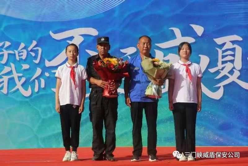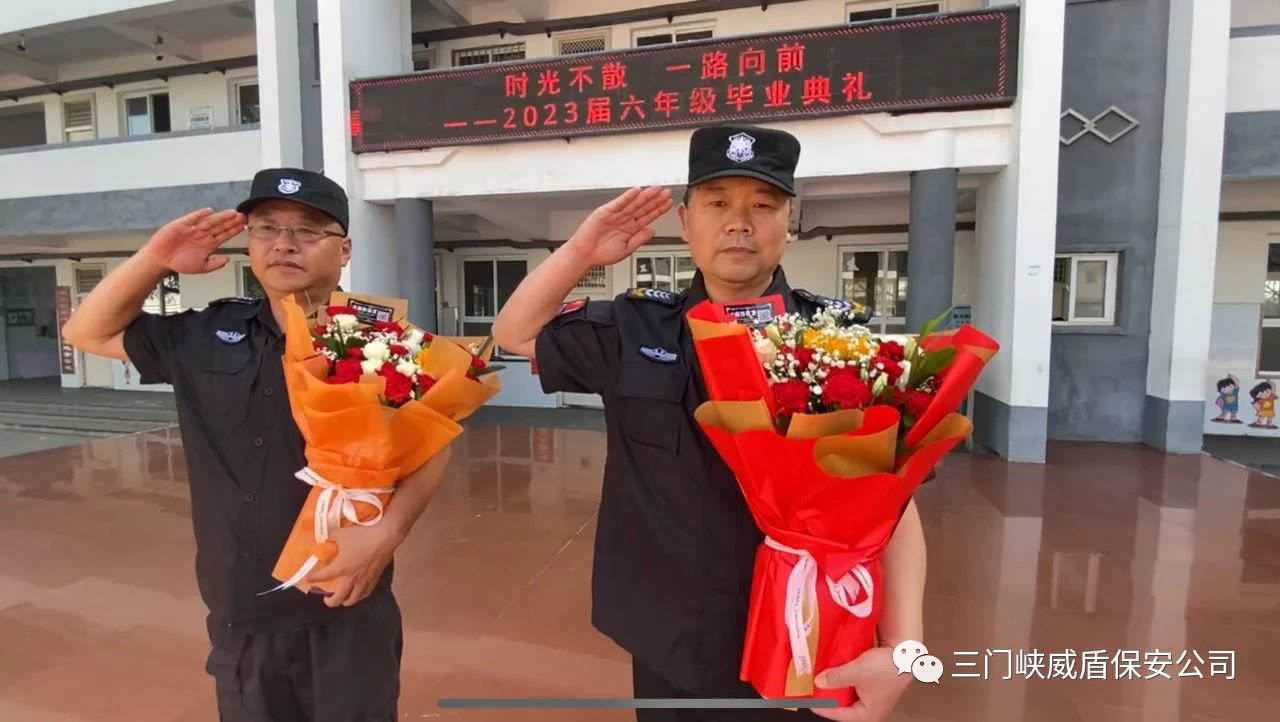 他们也是主角--湖滨区第四小学、第六小学、滨河小学毕业生为威盾保安员鲜花