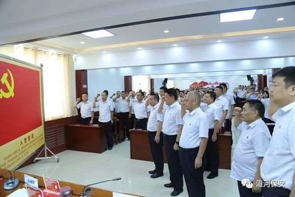 接着,在王高峰同志带领下,面向鲜红的中国共产党党旗,18名新党员举起右拳、庄严宣誓,许下铮铮誓言。全体老党员一同重温入党誓词,齐忆初心使命。
