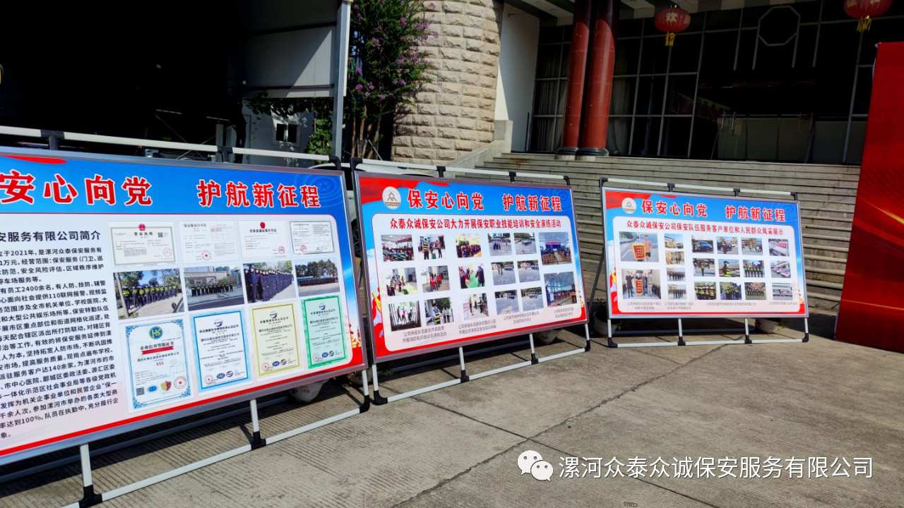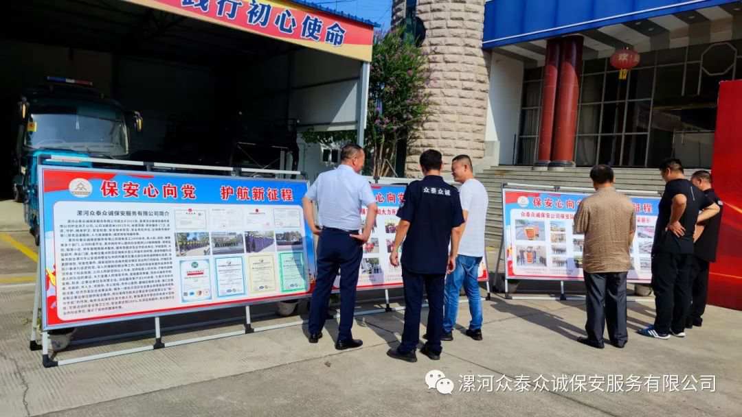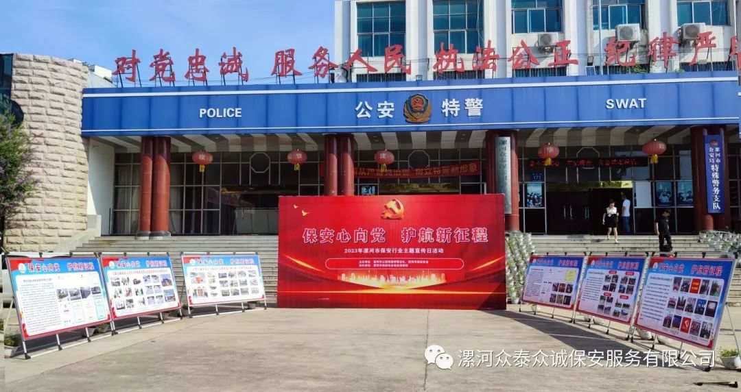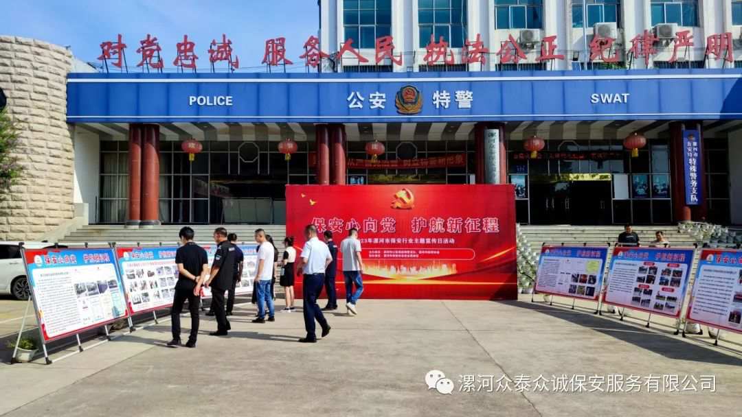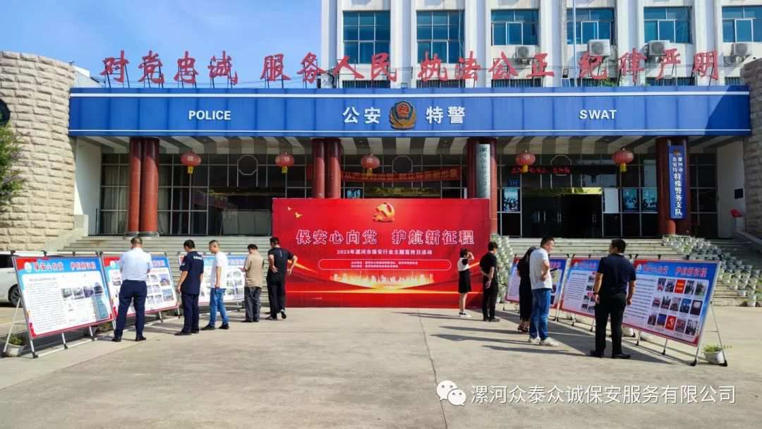 2023年7月24日,漯河众泰众诚保安服务有限公司积极参加由漯河市公安局巡特警支队、漯河市保安协会联合主办的“保安心向党、护航新征程”保安行业主题宣传日活动。