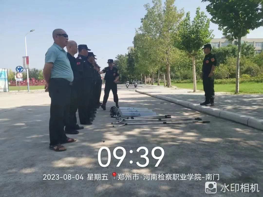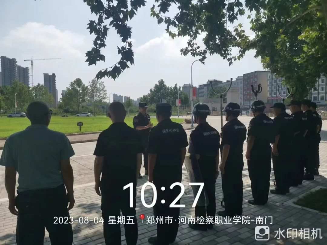 为进一步落实校园安全防范措施,认真做好暑期校园安全工作,积极开展夏季治安打击整治专项行动。近期,河南天将保安服务集团有限公司督察培训部,深入服务单位——河南检察官职业学院,开展安保安全防范检查、普法宣教等活动,提升安保执勤队员安全意识,护航校园暑期平安。