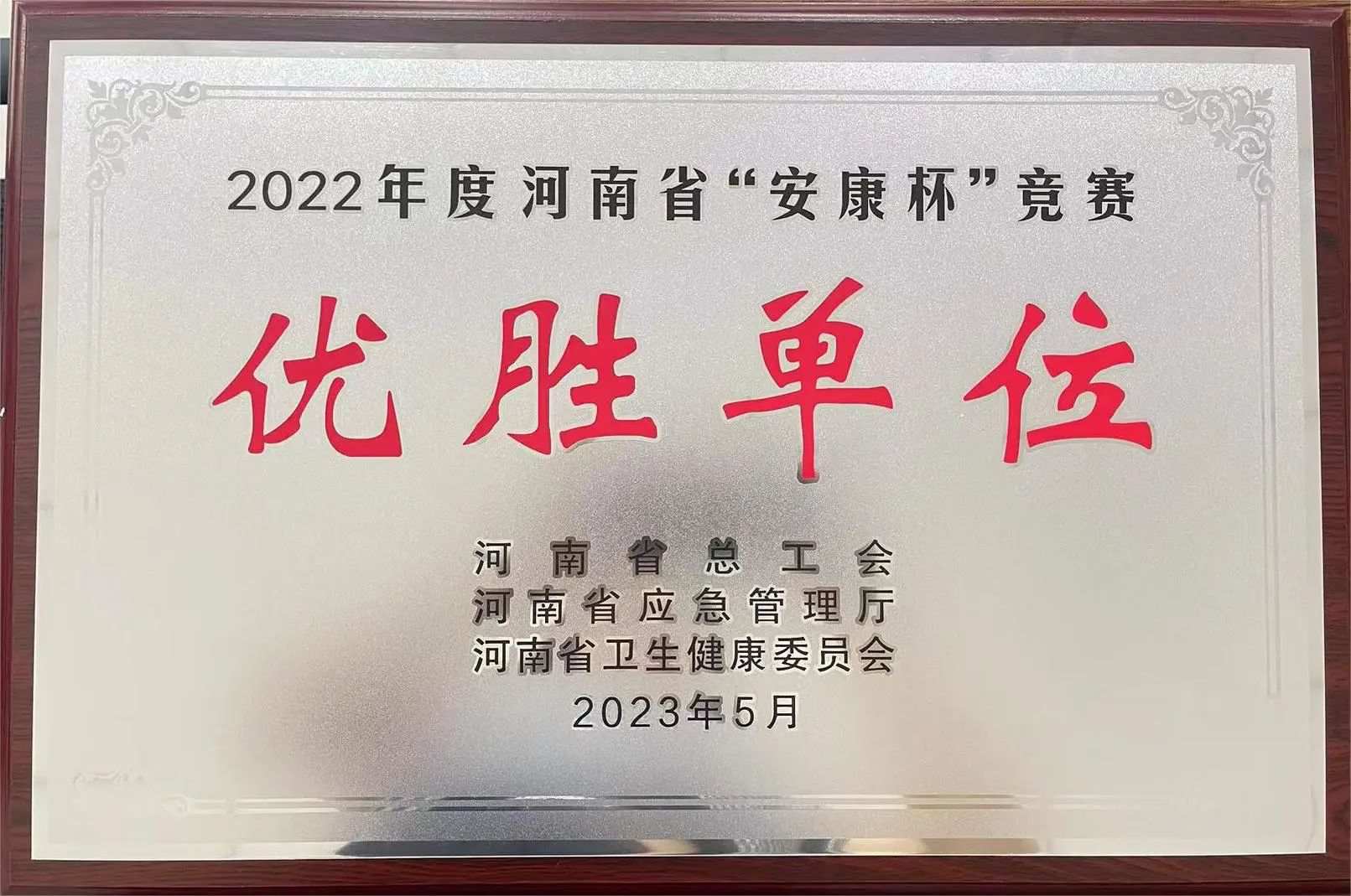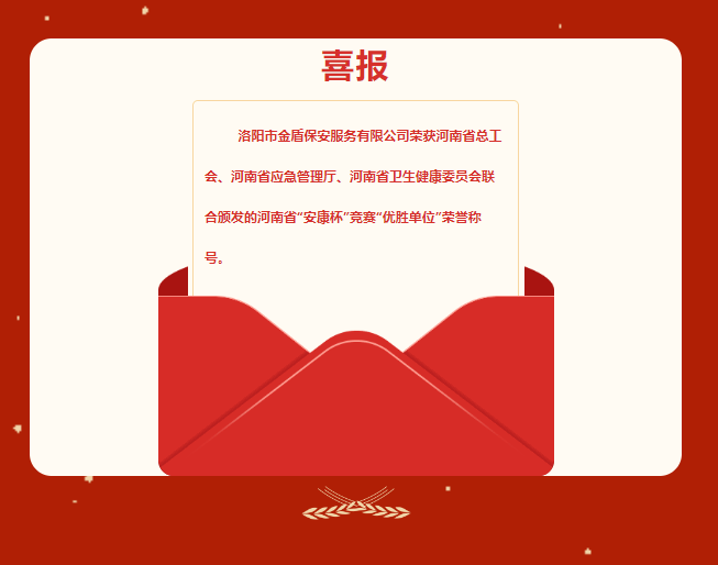 【伊川财源】赞!金盾保安获省级安康杯优胜单位荣誉称号