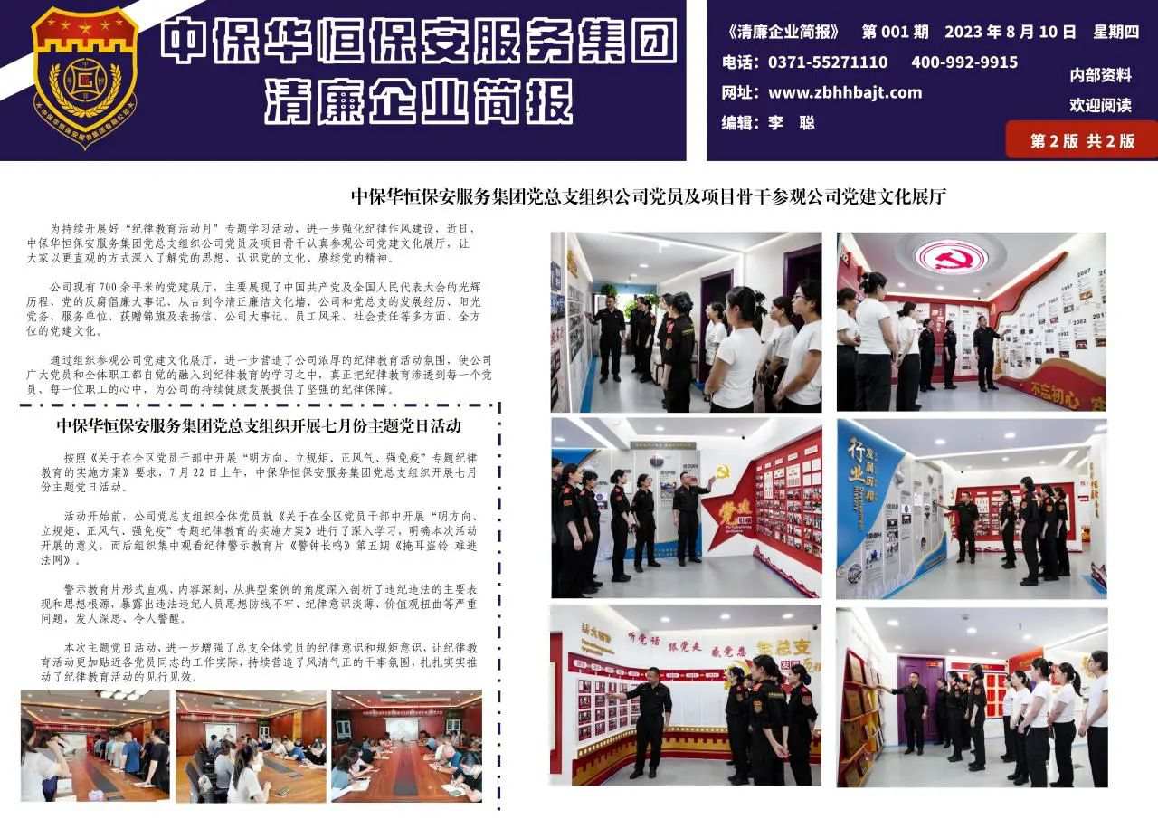 中保华恒保安服务集团党总支多措并举推进清廉文化建设走深走实