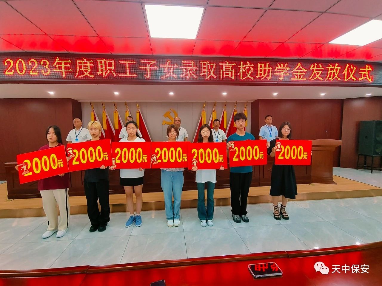 公司始终秉承以人为本的发展理念,坚持“进了公司门,就是一家人”,千方百计为员工办实事、办好事。长期以来,公司党总支、董事会每年开展“金秋助学”活动,为考上大学的公司员工子女发放助学金。自活动开展以来,公司共为140余名考入高校的大学生发放助学金28万余元。今年共有10名职工子女考入高等学府,这10名学子分别收到了2000元助学金。“金秋助学”活动的开展充分体现了公司成果共享、惠及人人、关爱员工、回报社会的责任担当。通过开展“金秋助学”活动,不仅让广大员工深切地感受到公司大家庭的温暖,也提升了学子们刻苦学习的动力和立志成才的信心,进一步让提升了企业的凝聚力,为构建和谐企业,树立“天中保安”良好形象奠定了坚实基础。