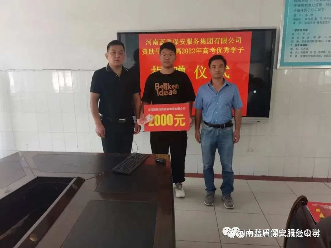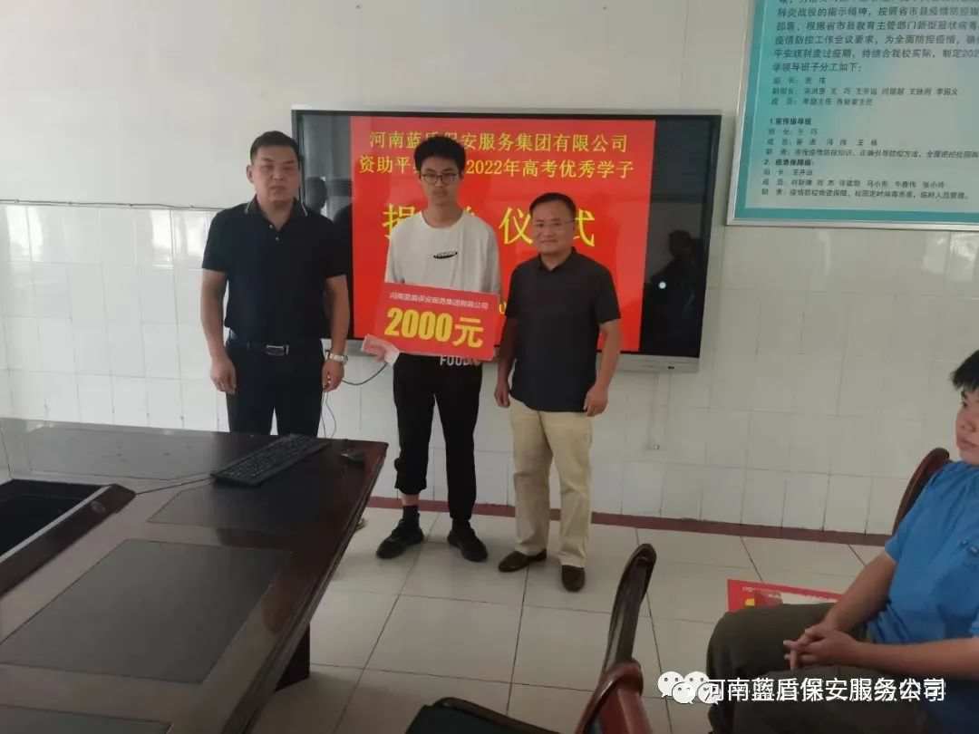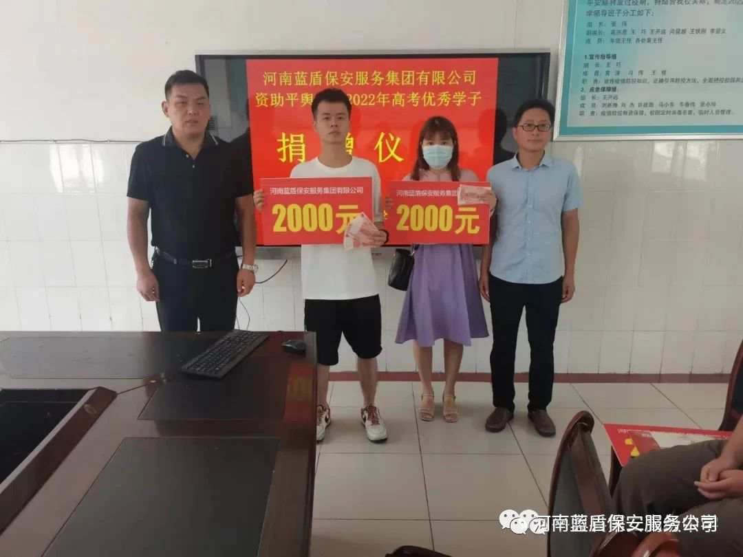 助学情长,蓝盾保安捐赠2万元助优秀学子圆梦大学
