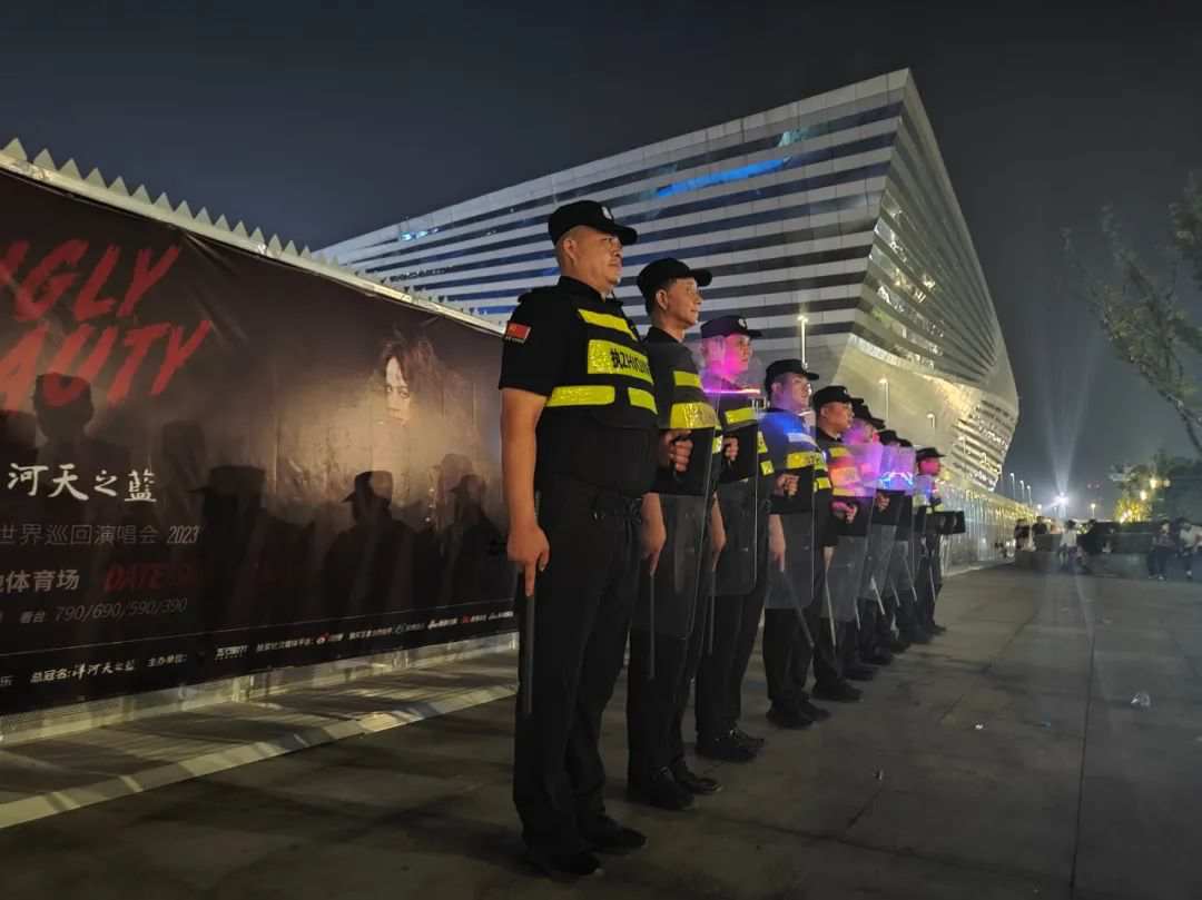 为保障演唱会顺利进行,演唱会当天郑州保安集团共出动安保队员652名,安检队员146名,全体参勤人员提前到岗、严阵以待,全力协助主办方做好票证查验、过门安检、人员物品检查及会场周边交通疏导等工作。演唱会外围安保任务繁重,执勤队员对容易出现安全隐患的地方加强周边巡防,对滞留人员进行疏导,避免人员拥堵;场内督查部、纪委部全时段巡查,对安保、安检队员仪容仪表、礼貌礼节、在岗在位、执勤情况进行严格监督检查,确保各项安全措施落实落细。各执勤队伍按责分工、通力协作、密切配合,认真落实各项安保任务,形成立体化的全面守护。