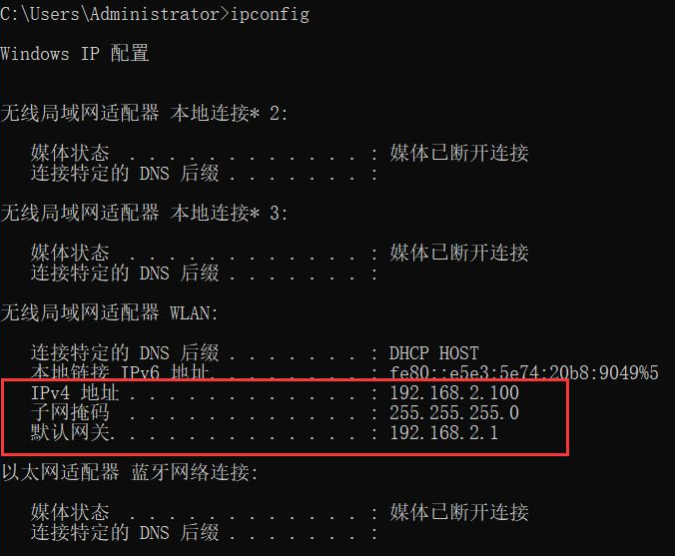 我们可以查下电脑的ip地址,已经与路由器2的lan口是同一个网段了。