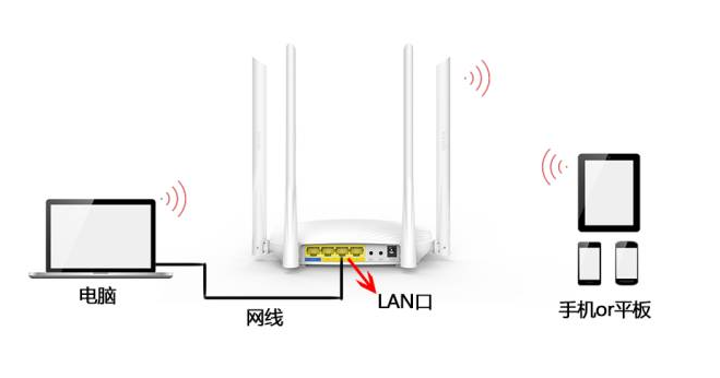 需要一根网线,网线一头连接主路由器(一级路由器)上的任意一个LAN(1/2/3/4)接口,另一头连接路由器2的WAN接口;如图所示:
