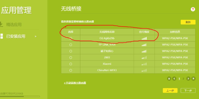 选择主路由器wifi名称,然后点下一步,输入主路由器的wifi密码(所以要记得主路由器的wifi密码)。