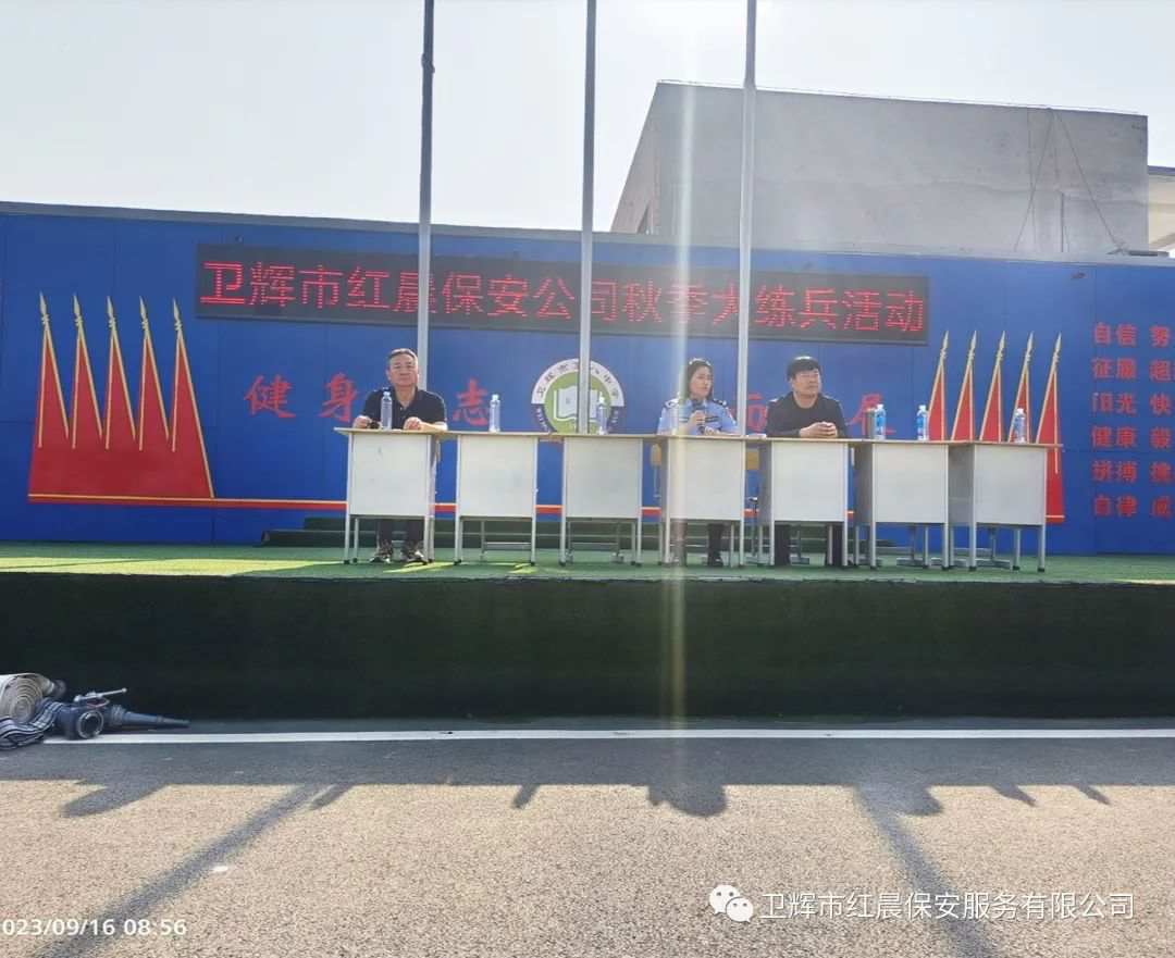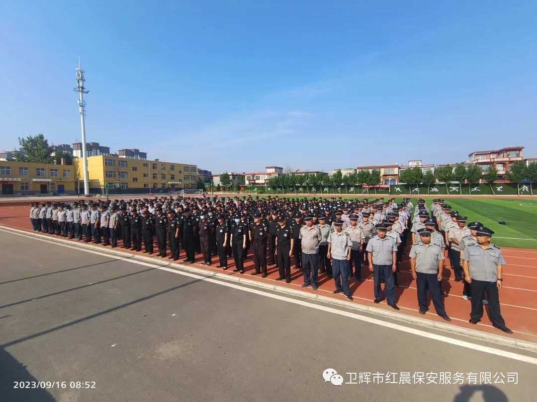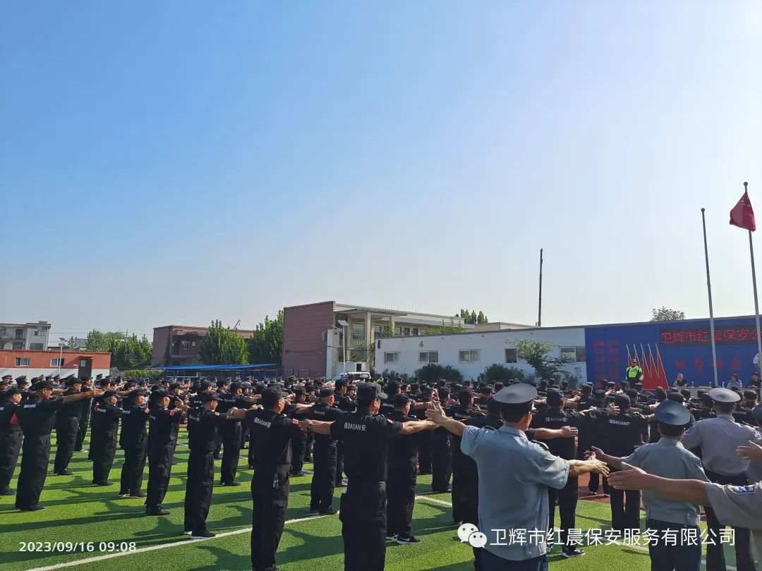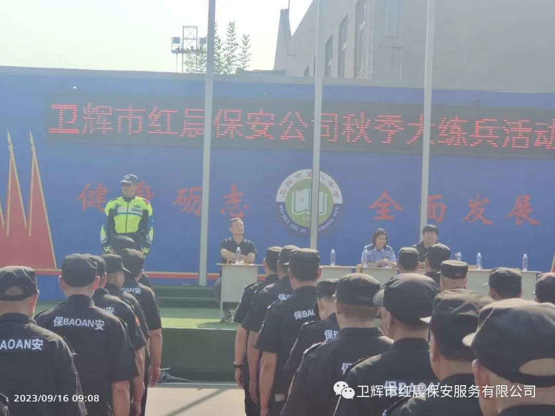 为全面提升保安队伍整体素质和服务质量,9月16日、17日,卫辉市红晨保安服务有限公司在卫辉市第八中学组织开展了秋季大练兵活动,致力打造一支善于研究,精于管理,业务熟练,作风过硬的安保队伍。