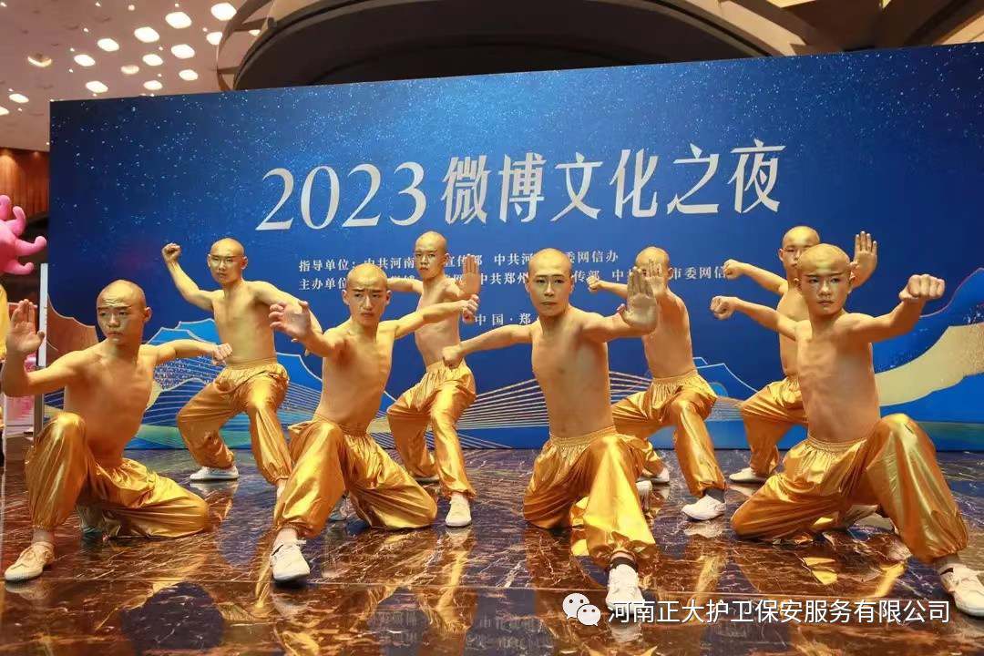 天地之中,华夏之源,功夫郑州。9月19日晚,2023微博文化之夜绽放郑州,国内文化名人、博物馆代表、非物质文化遗产传人、业界学者、多领域微博大V在内的百余位嘉宾会聚一堂,呈现了一场精彩纷呈的文化盛宴。河南正大护卫保安服务有限公司受主办方委托,担负其安保工作。