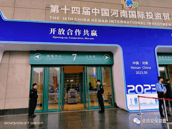 9月24日至28日,第十四届中国河南国际投资贸易洽谈会(以下简称“投洽会”)在郑州市会展中心成功举办。本届投洽会由河南省人民政府、国家商务部、中国贸促会、中国对外友协共同主办,是河南省今年规模最大、规格最高、最具影响力的国际性经贸盛会,有来自全球各地的数万名客商、嘉宾齐聚郑州。郑州市金盾保安有限公司自2023年9月22日被确定为本次项目的中标单位起,时间紧、任务重,在董事长吕洪亮的组织领导下,全员出动、全力以赴,圆满完成本次重大活动的安保及安检任务。