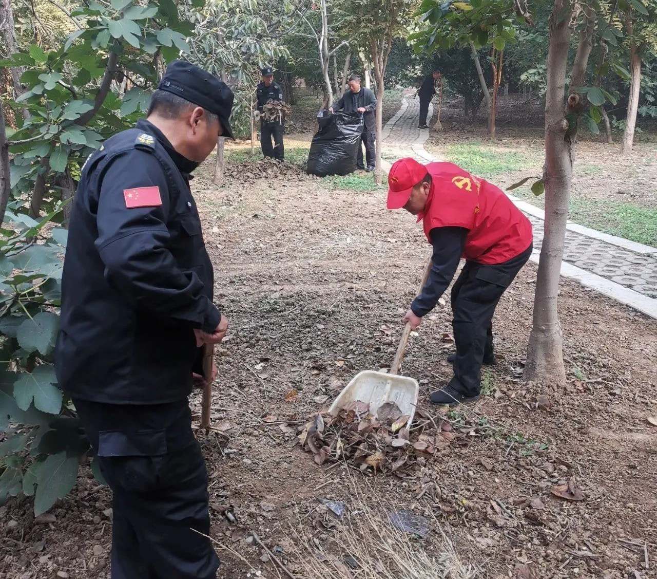 活动中,党员干部发扬不怕脏、不怕累的精神,对小区各个角落卫生死角进行打扫,清理了地面落叶,打扫了垃圾和杂物,对枯枝进行捡拾,认真细致地打扫每个角落,确保卫生不留死角。