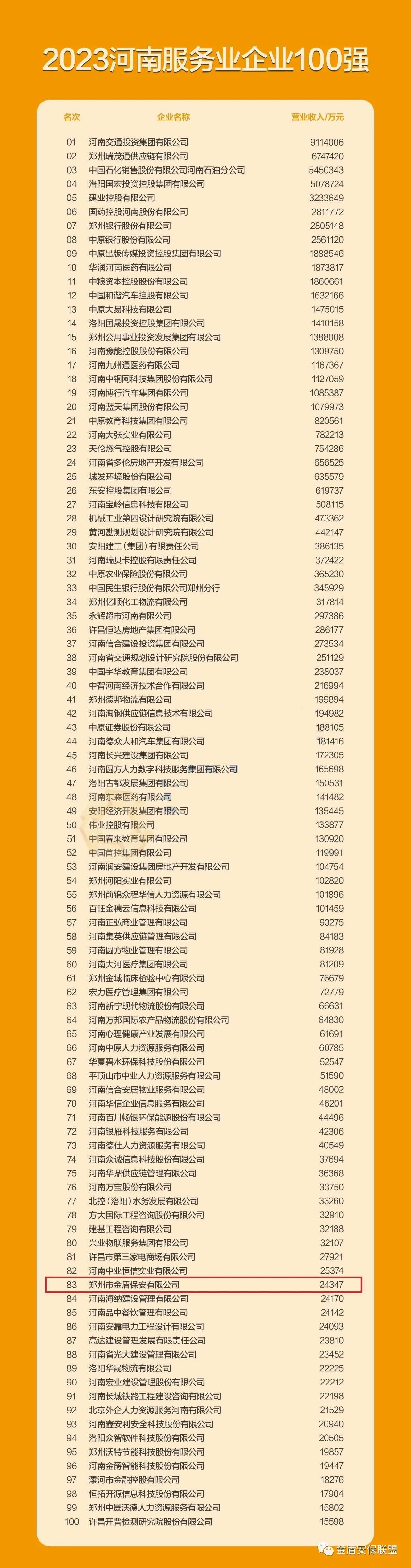 振兴河南 大企当先| 郑州金盾入榜2023河南服务业企业100强
