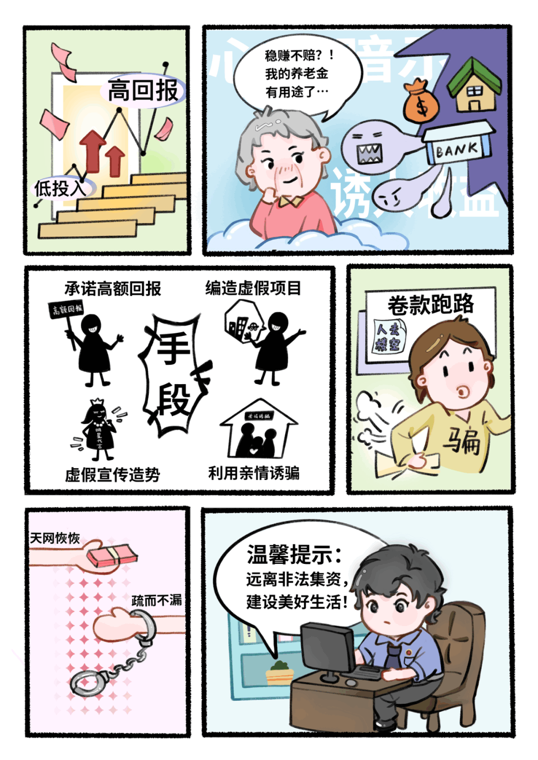 远离非法集资,不要轻信高额回报,不要被赌博心态和侥幸心理蒙蔽双眼。要审慎稳健投资,合理评估自身承受能力,量力而行,保护好自己的钱袋子。