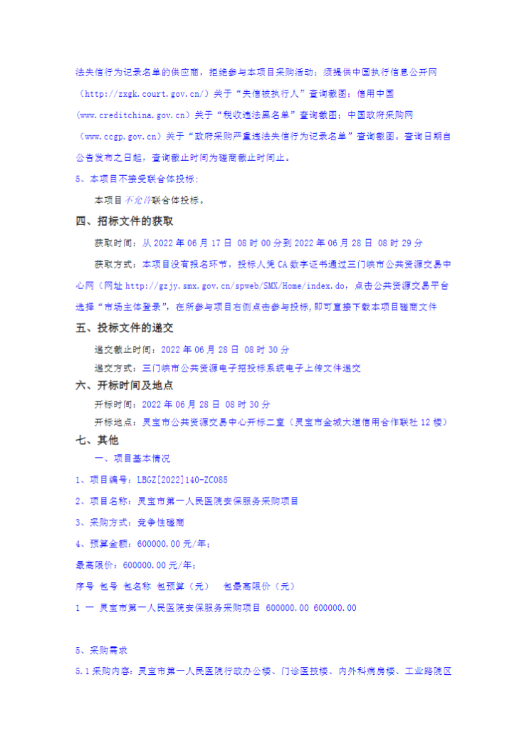 灵宝市第一人民医院安保服务采购项目竞争性磋商公告