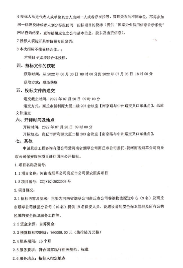 河南省烟草公司商丘市公司保安服务项目招标公告