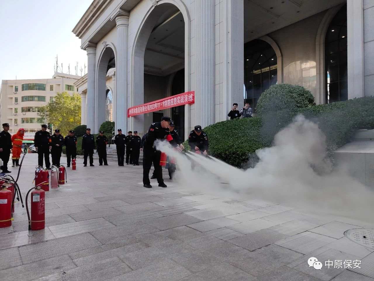 为切实做好2023年“119消防宣传月”宣传活动,进一步提升全民消防安全意识和反恐防暴能力,强化客户单位消防自救逃生能力。2023年11月24日,郑州祥和集团有限公司与郑州保安集团中原分公司共同组织开展消防疏散灭火演习活动。