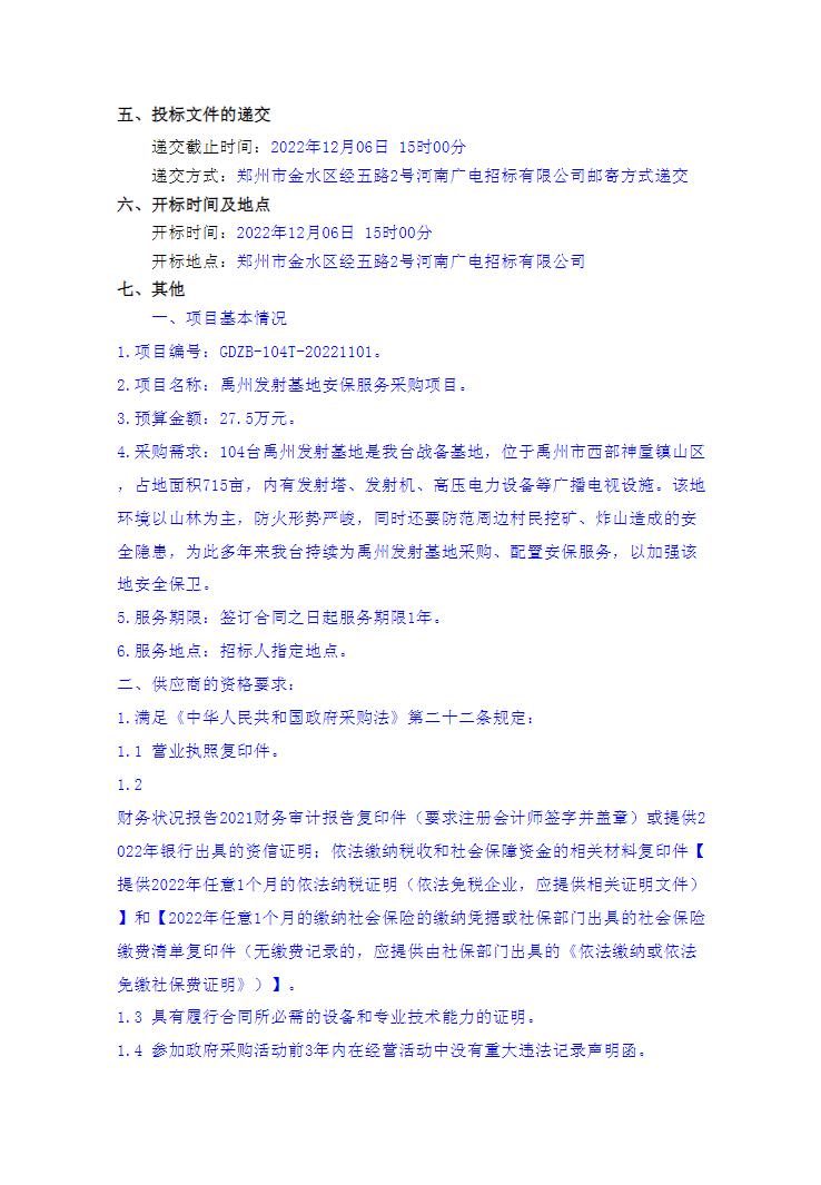 禹州发射基地安保服务采购项目竞争性磋商采购公告