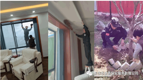10月23日16时,人防八部驻焦作摩登文旅企业管理有限公司执勤队员尚凤新利用休息时间帮助客户擦洗玻璃,清理屋角灰尘,垒砌花池,打扫院落卫生,受到客户主管领导的表扬。