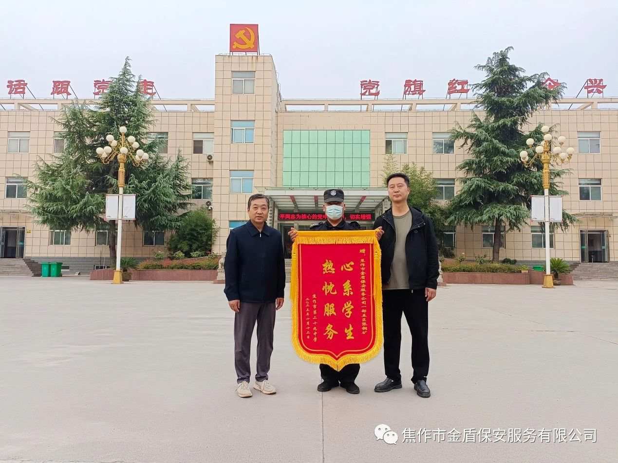 10月13日,人防一部收到焦作市第二十九中学送来锦旗一面,表扬人防一部驻该校保安员张铜矿同志心系学、生热忱服务。原来,张铜矿在学校门岗岗点工作期间,工作严谨认真、严格把关,能按照学校的各项规章制度办事
