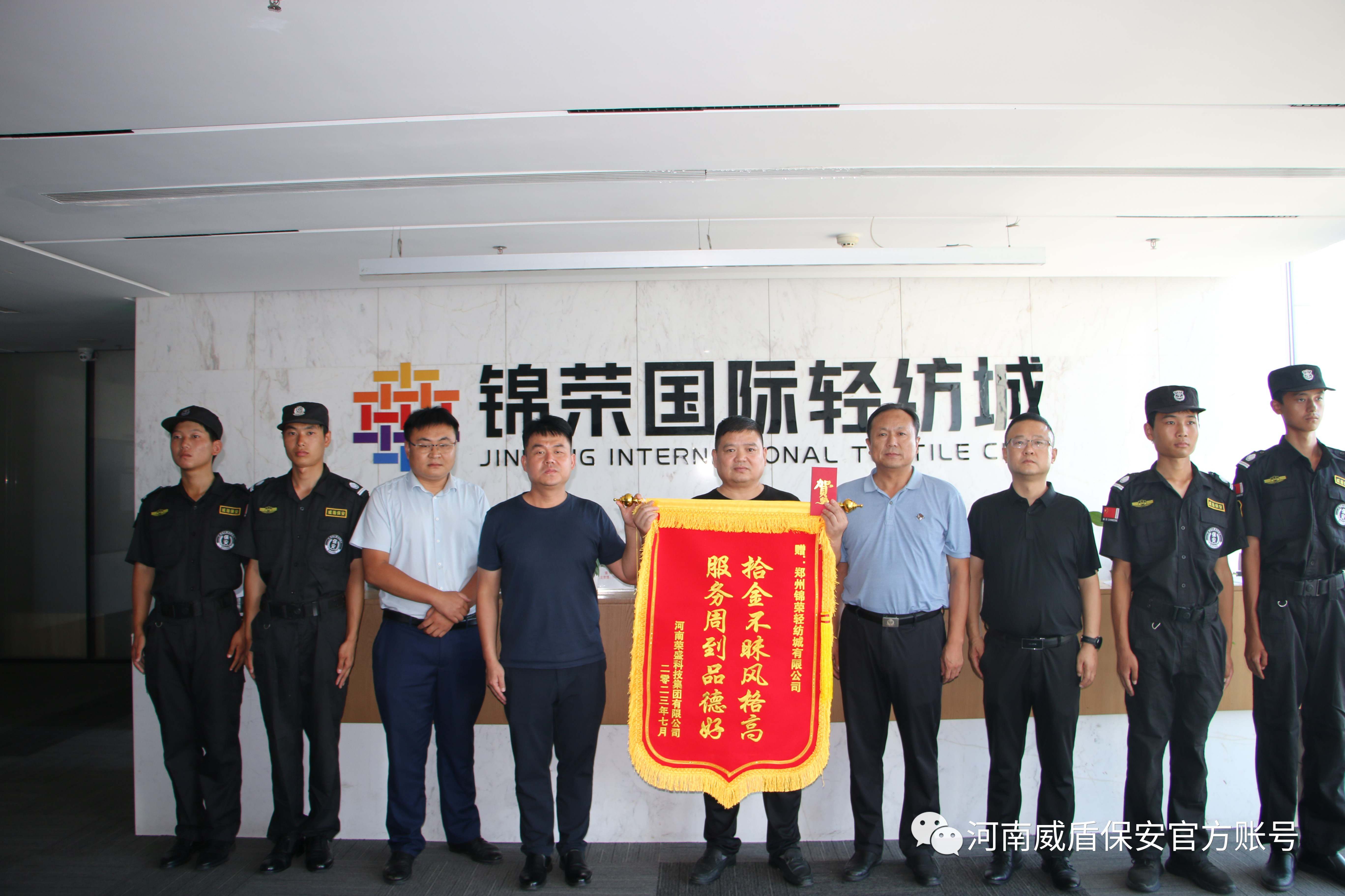 8月3日下午,威盾保安公司副总经理赵明伟、督管部督察长李郑平一行来到郑州锦荣轻纺城拜会了锦荣轻纺城保卫部经理孙军超,双方对最近发生的威盾保安队员拾金不昧事件进行了表彰。 近日,河南荣盛科技集团有限公司