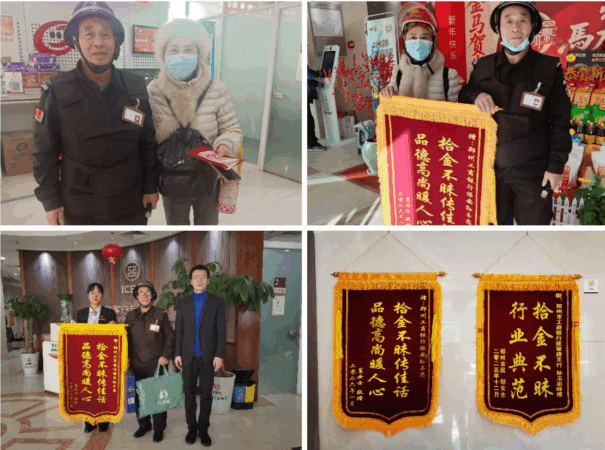 平凡岗位藏大爱,点滴善举暖人心。近日,郑州保安集团直属七公司派驻建设路支行营业室的值勤保安孙玉忠同志,凭借拾金不昧的高尚品德,再次收获客户锦旗与行业赞誉,用实际行动诠释了“保安人”的责任与担当,为公司