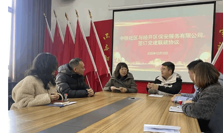 为深入学习贯彻习近平新时代中国特色社会主义思想和党的二十大精神,2025年12月15日下午3时,郑州市保安服务集团有限公司经开分公司党支部与明湖办事处中铁社区总支部在中铁社区举行党建联建协议签约仪式。