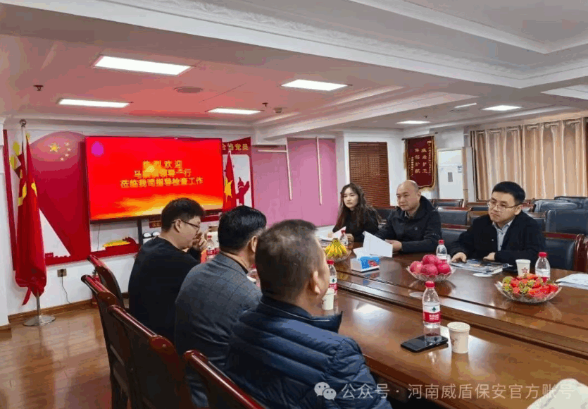 近日,马寨镇党委副书记、镇长吴泽龙、综合行政执法大队李军一行到河南威盾保安服务有限公司调研指导工作。威盾公司董事长韦存山、总经理苗玉磊、督管部部长韦陆良等参加座谈会。 在座谈会上,双方进行了深入的工作