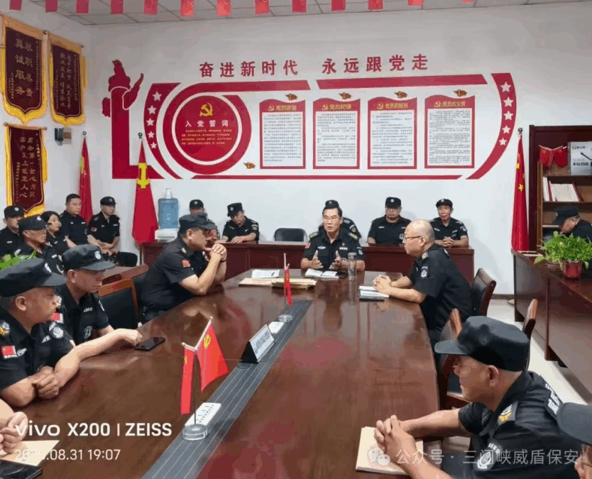2025年9月2日,河南省公安厅治安总队副总队长赵万铨、支队长刘玉华、郑州市公安局治安支队副支队长张新涛一行,到荥阳市保安服务有限公司押运大队调研指导金融守押一体化系统建设、运行及安全管理工作。公司党