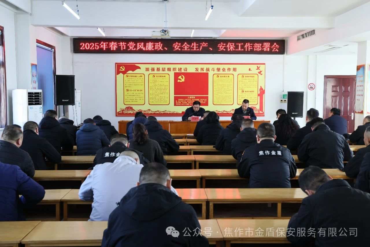 根据市委市政府、市纪委、市安委会和市财政局(国资委)有关春节工作要求,1月27日焦作市金盾保安服务集团公司在党员学堂组织召开了2025年春节党风廉政建设、安全生产和安保服务部署会。会上,集团公司党委书