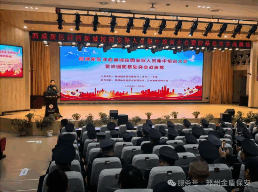 金秋时节,丹桂飘香。在新学期各项工作稳步推进的关键节点,西咸新区教育体育局(沣西)工作部联合郑州市金盾保安有限公司(以下简称“郑州金盾”),成功举办 “2025 年秋季开学校园安全专题培训暨防暴处突实