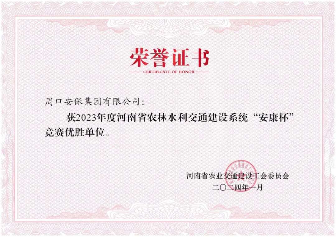 近日,周口安保集团有限公司荣获2023年度河南省农林水利交通系统“安康杯”竞赛优胜单位荣誉称号,押运护卫公司市区第二分公司荣获优胜班组(项目部)荣誉称号。 自“安康杯”竞赛活动开展以来,安保集团以此为