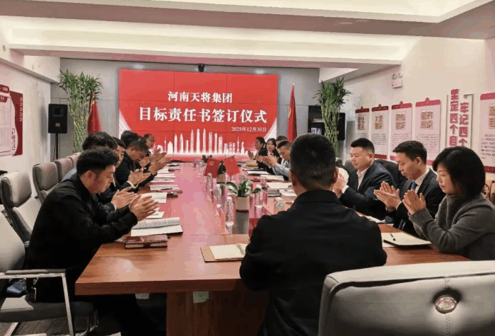 辞旧迎新启新程,凝心聚力谋发展。12月30日上午8:00,在河南天将集团会议室,公司各级管理层齐聚一堂,隆重举行2026年度目标责任书签订仪式,共同开启安保服务事业新征程。 仪式伊始,公司董事长李占好