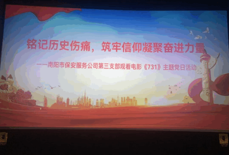 为纪念中国人民抗日战争暨世界反法西斯战争胜利80周年,深化爱国主义教育,弘扬伟大抗战精神,9月26日,南阳市保安服务有限公司组织党员干部和入党积极分子开展“铭记历史伤痛 筑牢信仰凝聚奋进力量”主题党日