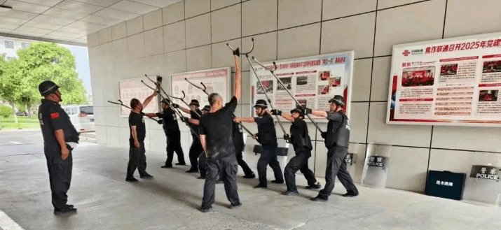 8月14日上午9时30分,焦作金盾人防二部驻中国联合网络通信有限公司焦作市分公司执勤保安队员,在区域经理赵文魁的带领下,按照客户要求组织了第三季度防恐演练。 演练活动内容重点突出歹徒手持凶器的场景。在